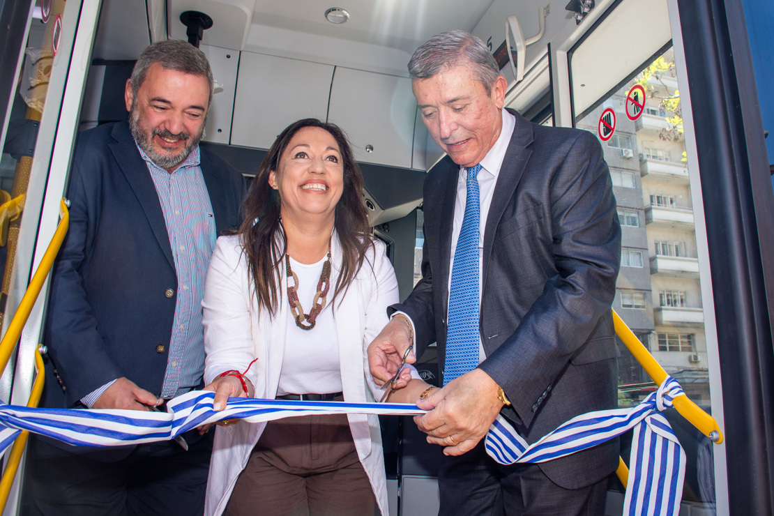 La presentación de nuestras nuevas unidades se realizó el martes 21 de octubre en la explanada de la Intendencia de Montevideo y contó con la participación de nuestro presidente, Juan Salgado; del intendente de Montevideo, Mario Bergara; y con la presencia de la ministra de Industria, Energía y Minería, Fernanda Cardona; de la secretaria general de la IM, Viviana Repetto; del director de Coordinación Institucional, Justo Onandi; y del director del Departamento de Movilidad, Germán Benítez.